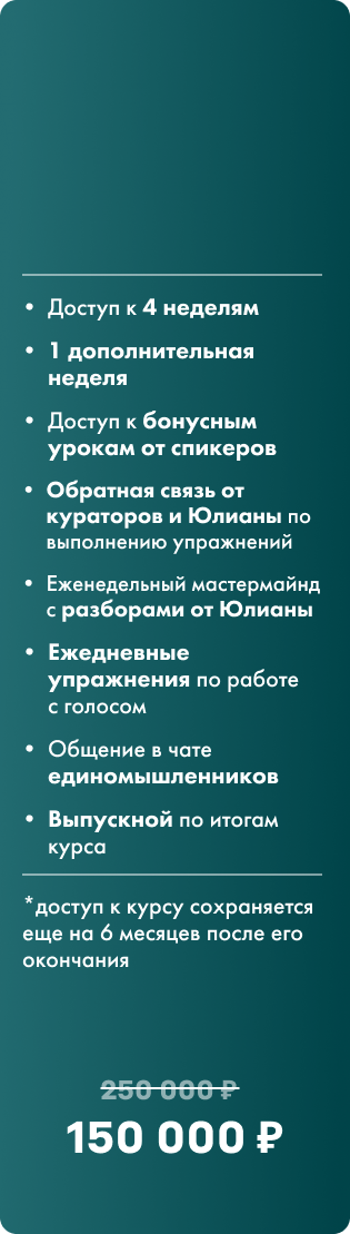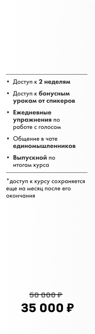 тот, кто хочет влиять на команды, партнеров, руководителей с помощью голоса, а также уверенно вести переговоры, доносить свои идеи и закрывать успешно сделки