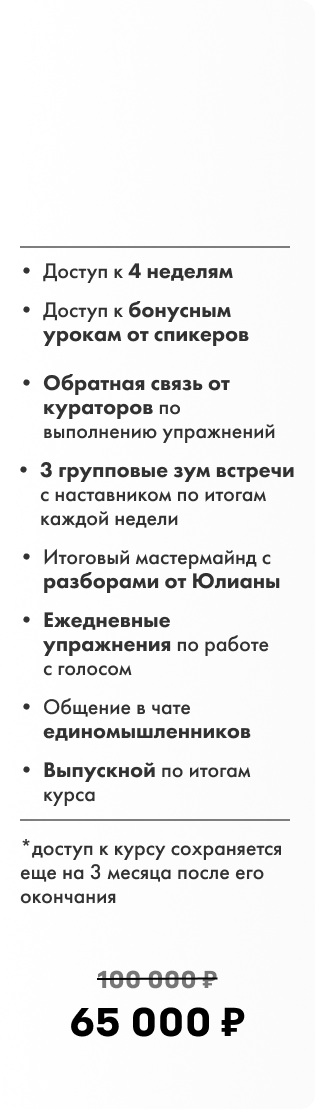 * доступ к курсу сохраняется еще на месяц после его окончания