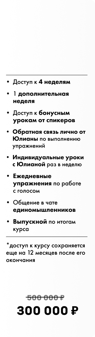 • Раскрывает потенциал голоса и вокала актерам Netflix, блогерам-миллионникам, артистам и звездам шоу-бизнеса